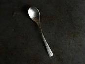 陰影が際立つ銀白色のカトラリーです。職人の手によって丁寧に彫られた、美しい槌目が柄の文様として転写されているのが特徴。艶を抑えたサテン仕上げによって、重厚感を醸し出しています。